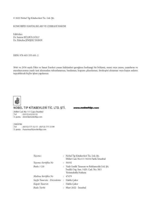 Modern ve teknolojik yöntemlerin her alanda etkin olduğu günümüzde, sağlık bakım ve tedavi girişimlerinin güncel ve yüksek donanım ile sunulması bilgi üretimi ve bilgiye erişimi çok kolaylaştırmıştır. Bu sayede hem sağlık bakım uygulayıcıları hem de hasta ve yakınları, gereksinimleri doğrultusunda, bilgi kaynaklarından kolayca yararlanabilmektedir. Madalyonun ön yüzü olarak nitelendirebileceğimiz bilgiye erişim kolaylığı son derece ümit vericidir. Ancak madalyonun arka yüzüne bakıldığında “artan yaşam beklentisine eşlik eden komorbid hastalıkların, hastaların konfor ve yaşam kalitesini düşürdüğü” gerçeği gün yüzüne çıkmaktadır. Hastaların rutin yaşantılarında kullanmak zorunda oldukları ilaçların getirdiği yükler, maddi kaygılar, komorbid hastalıkların bıraktığı psikososyal ve fizyolojik sekeller konfor ve yaşam kalitesini düşüren bazı önemli detaylardır. Komorbid hastalıklar konusunda bilgi kaynakları istenilen nicelik ve niteliğe henüz ulaşmamıştır. Bu da komorbid hastalıkların etkili yönetim olanağının ve Dünya genelinde aynı standartta bakım sunulmasının önünde bir engel teşkil etmektedir. Klinisyen hekim ve hemşirelerin uygulanan bakımı optimize etmelerine yardımcı olacak güçlü bir bilgi kaynağı ortaya çıkarmak amacıyla, “Komorbid Hastalıklar ve Cerrahi Bakım” kitabımızı güçlü yazar kadrosunun eşsiz ve önemli katkıları ile okurlarına sunuyoruz. Komorbid hastalıklar nedeniyle bakım gereksinimi artmış, sirkadiyen ritim bozukluğu gelişmiş, biyo-psiko-sosyal ve davranışsal mekanizmaları zarar görmüş hastaların, klinik durumuna ilişkin ön görü oluşturmak oldukça zordur. Ayrıca; komorbid hastalıkların neden olduğu belirti ve bulguların şiddeti de klinik durum için bir yordayıcıdır. Diğer yordayıcılar arasında cerrahi girişim sonrası olası komplikasyonlar yer alır ve ameliyat sonrası bakımın etkinliği arttıkça komorbid hastalığın şiddetli belirti ve bulguları hafifl eyecektir. Bu kitap, cerrahi süreçlerde komorbid hastalıkların yönetimine ilişkin güncel bilgiler sunar. Sık rastlanan obezite, tip II diyabetes mellitus, kardiyovasküler hastalıklar ve obstrüktif uyku apnesi, hipertansiyon gibi komorbiditelerden daha az görülenlere kadar, komorbiditelerin çoğu ve bazı özel durumlar, kitabımızda detaylı olarak irdelenmeye çalışıldı. Komorbiditelerin zor anlaşıldığı ve klinik yönetiminin her zaman, kısa sürede başarıya ulaşamadığı ve ek girişimler gerektirdiği günümüzde, güncel bilgi ve kanıtların yer aldığı bu eser, komorbid durumları ve cerrahi bakımı bu kadar kapsamlı ele alan önemli ve ilk bilgi kaynağı olma özelliğine sahiptir. Biz bu kitapta komorbid hastalıklar ve cerrahi bakım ile ilgilenen klinisyen hemşirelerin yanı sıra yoğun bakım ekibi, hekimler ve sağlık alanında eğitim alan öğrencilere ve eğitim veren akademisyenlere rehberlik etmeyi amaçladık. Kitabımızın tüm okuyucularımıza ve mesleki gelişimlerine yarar sağlamasını diliyoruz. S. BÜLBÜLOĞLU Z. ŞİMŞEK YABAN