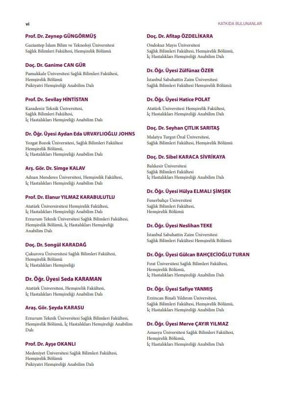 Sevgili meslektaşım Dr. Öğretim Üyesi Gülcan BAHÇECİOĞLU TURAN’ a editör yardımcılığı sürecinde her aşamadaki hızlandırıcı ve kolaylaştırıcı katkıları ve emekleri için teşekkür ederim. Ayrıca kitabın yazım sürecinde ülkemizin dört bir yanından tecrübe ve uzmanlıkları ile büyük destek veren hemşirelik camiasının değerli öğretim elemanlarına şükranlarımı sunarım.